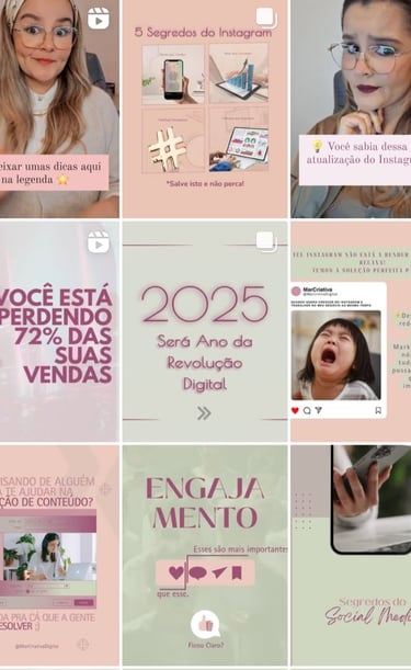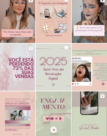 Ajudo mulheres empreendedoras a se organizarem no Instagram, planejarem seus conteúdos com estratégia e se posicionarem como profissionais no digital.